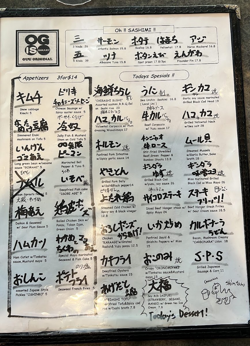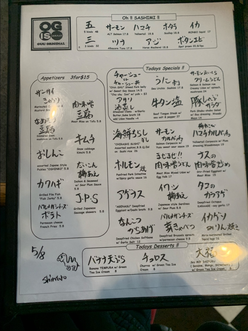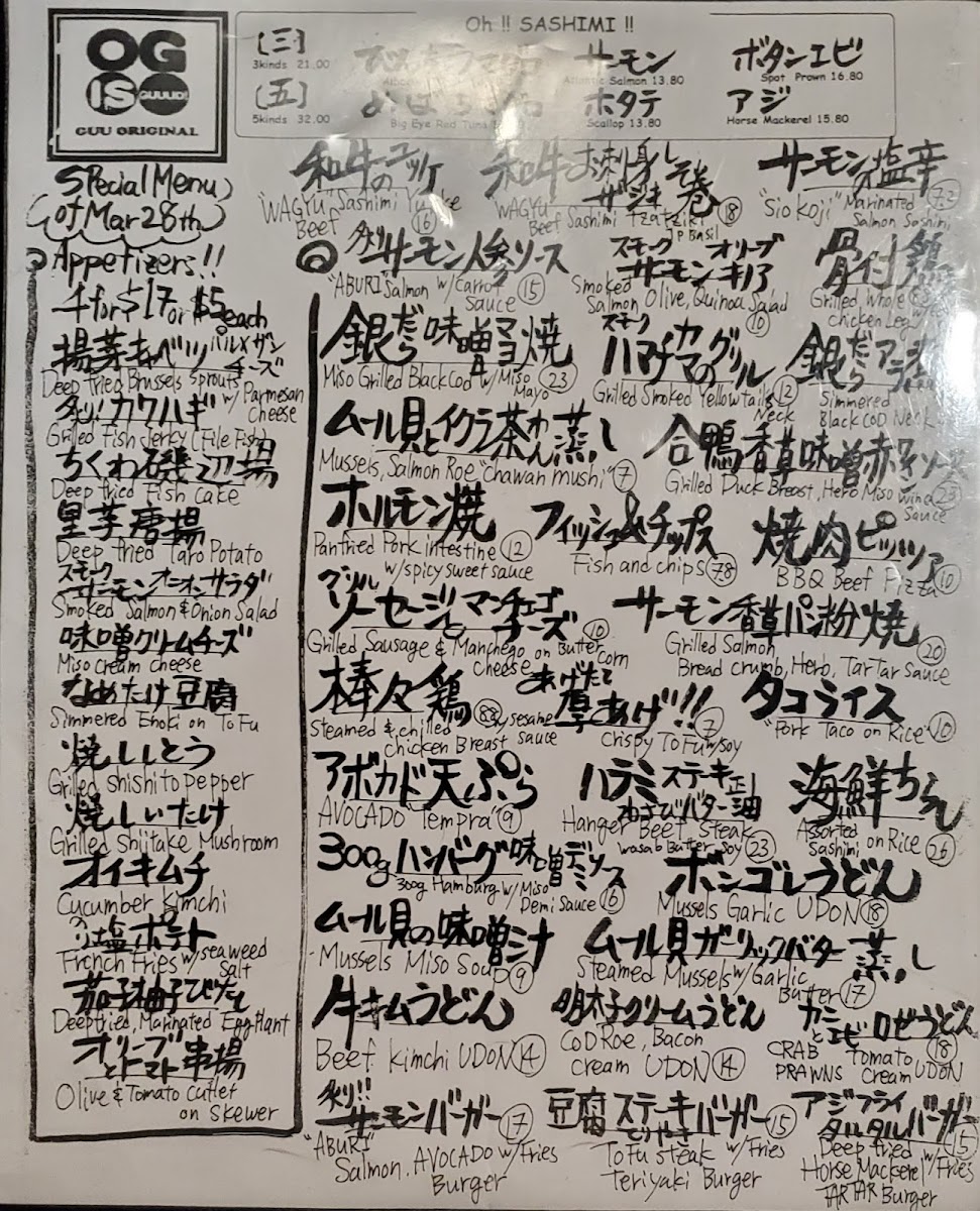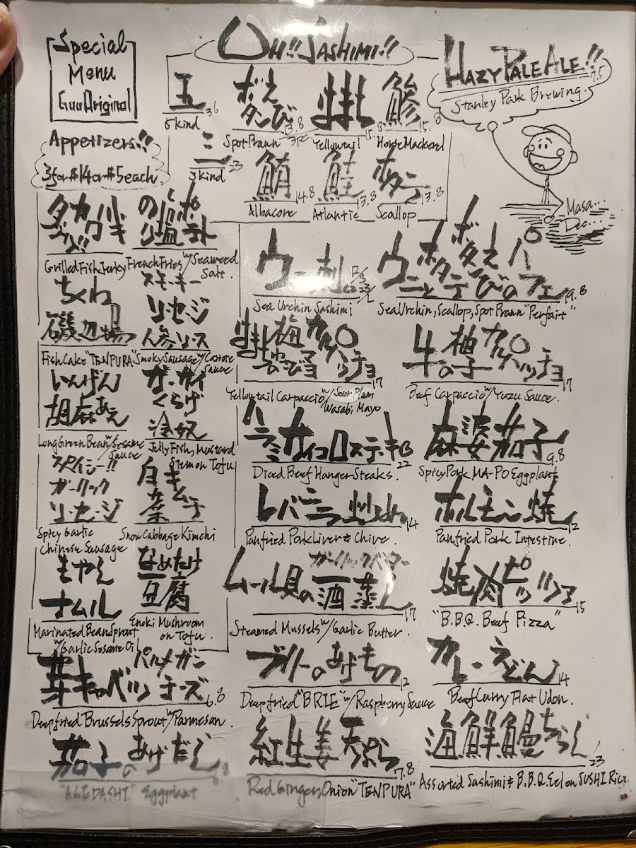 Welcome to Guu Original Thurlow, a gem nestled in Vancouver's bustling downtown, renowned for its vibrant izakaya experience. The menu boasts an exquisite array of dishes, offering everything from Age Tei chicken karaage to fresh sashimi, ensuring there’s something to please every palate. Highlights include the tender premium garlic beef tongue, perfectly charred for flavor, and the melt-in-your-mouth grilled salmon, accentuated with yuzu soy sauce.